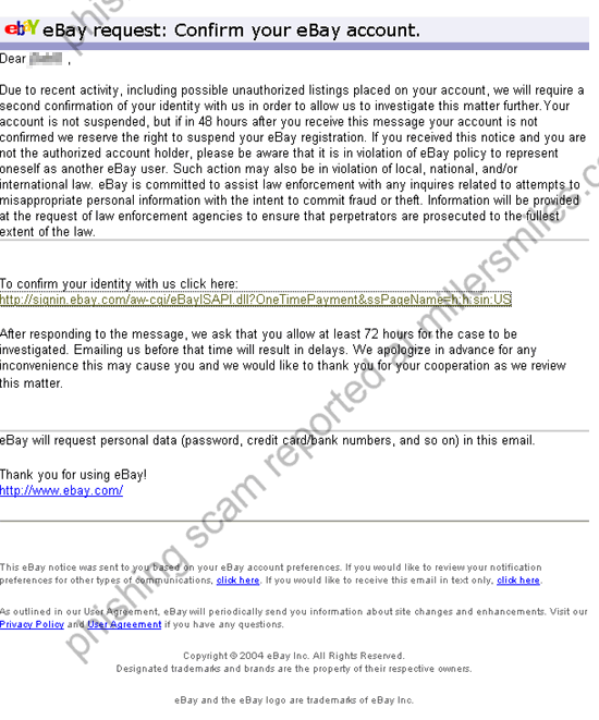 " Due to recent activity, including possible unauthorized listings placed on your account "