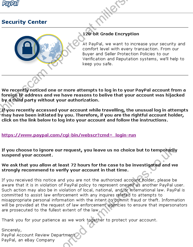 " We recently noticed one or more attempts to log in to your PayPal account from a foreign IP address"