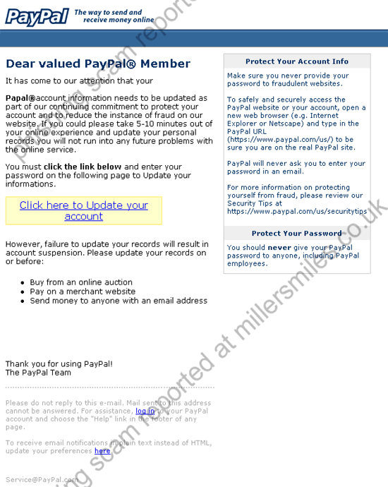" It has come to our attention that your Papal® account information needs to be updated as part of our continuing commitment to protect your account "