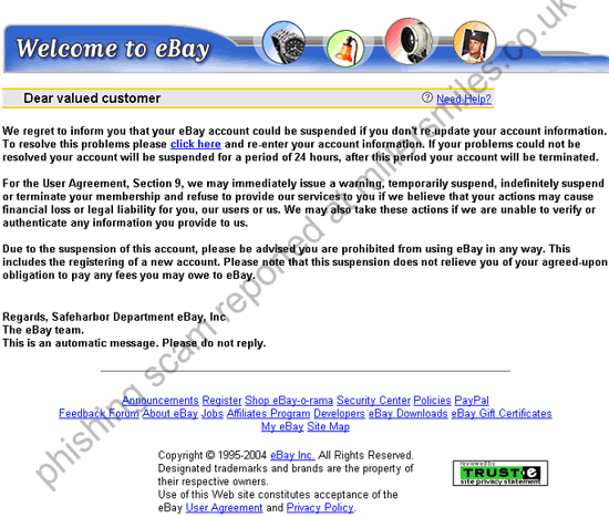 " We regret to inform you that your eBay account could be suspended if you don't re-update your account information."