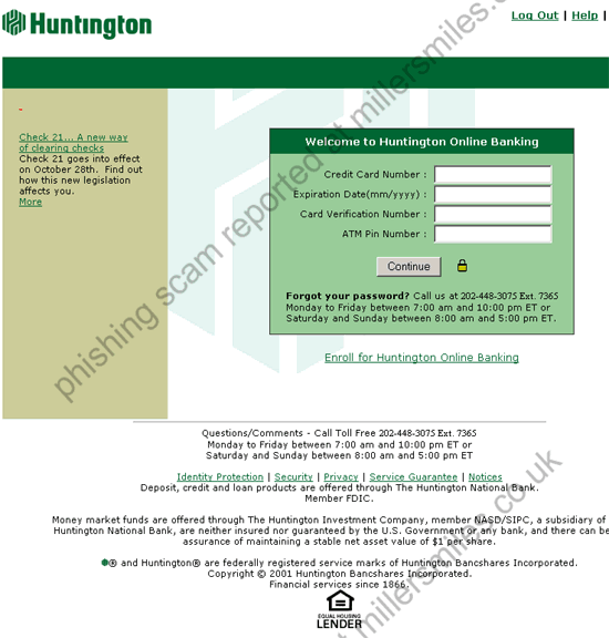 " The Huntington Bank requests confirmation to online payment made by an IP