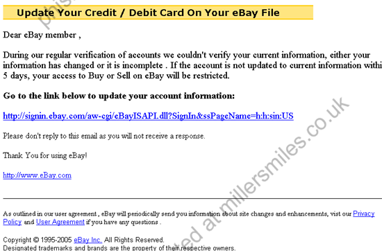 " Dear eBay member , During our regular verification of accounts we couldn't verify your current information, either your information has changed or it is incomplete "