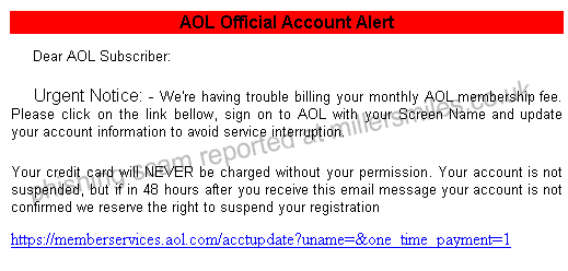" Urgent Notice: - We're having trouble billing your monthly AOL membership fee. "