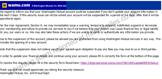 " We regret to inform you that your Washington Mutual account could be suspended"