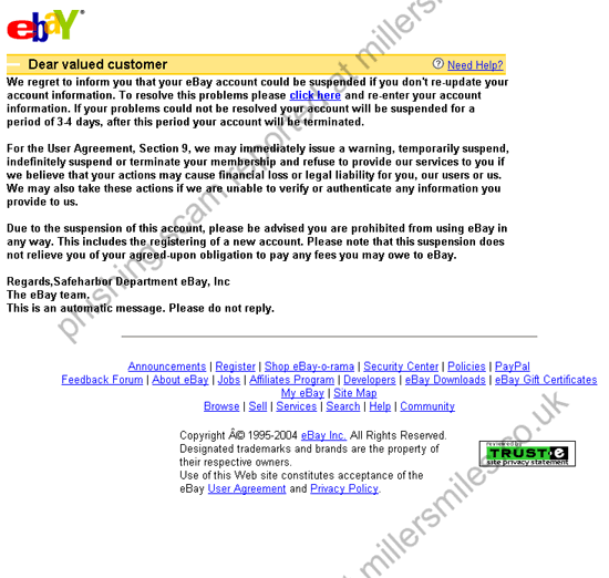 " We regret to inform you that your eBay account could be suspended if you don't re-update your account information. "