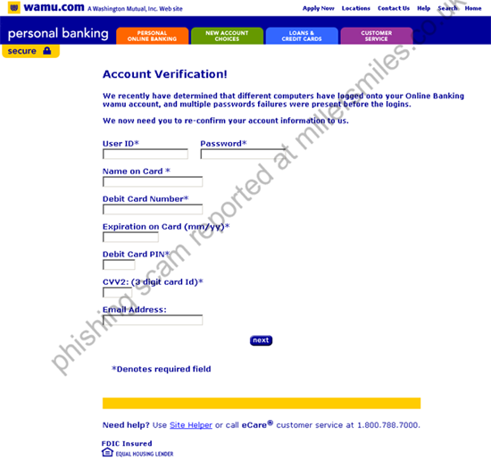 " We recently have determined that different computers have logged onto your Online Banking wamu account, and multiple passwords failures were present before the logins."
