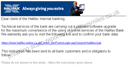 " Dear client of the Halifax Internet banking, Technical services of the bank are carrying out...."