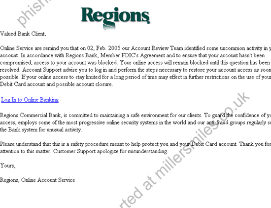 " Online Service are remind you that on 02, Feb. 2005 our Account Review Team identified some uncommon activity in your account. "