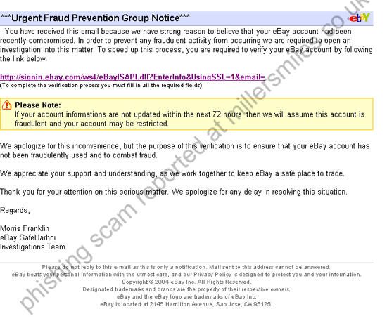 " You have received this email because we have strong reason to believe that your eBay account had been recently compromised."
