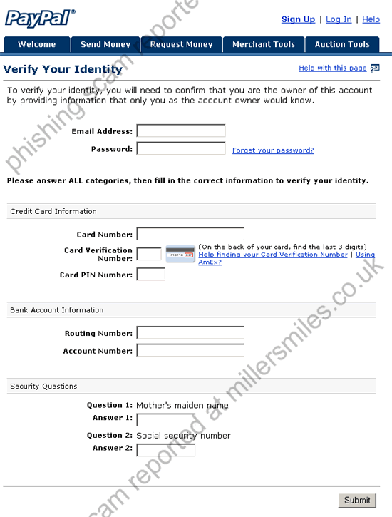 2. On the Verify Your Identity page, answer ALL of the questions, and click Submit.