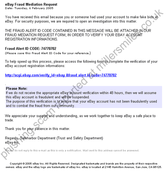 " You have recieved this email because you or someone had used your account to make fake bids at eBay. "