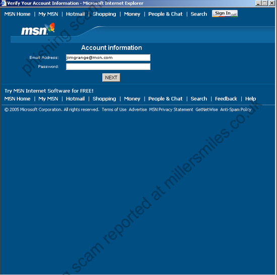 1. Email claims to be from MSN asking you to confirm your account data by clicking on the link. You will be taken to a spoof login page where your details will be captured by the phishers.