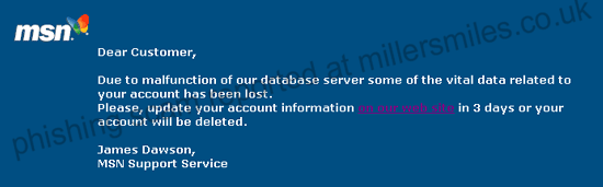 Due to malfunction of our database server some of the vital data related to your account has been lost. "