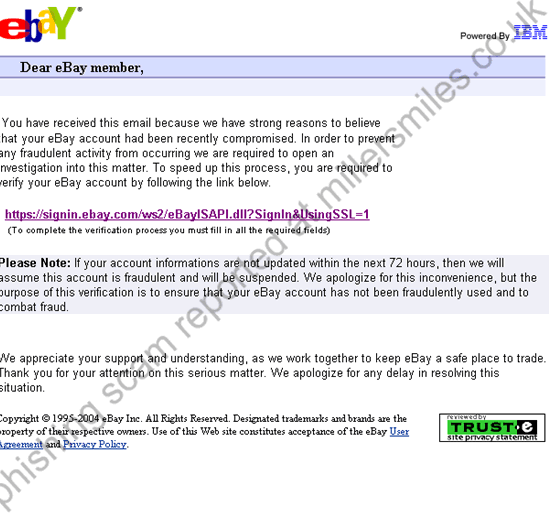 " You have received this email because we have strong reasons to believe that your eBay account had been recently compromised. "