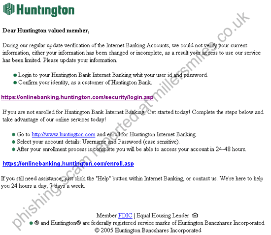 " During our regular update verification of the Internet Banking Accounts, we could not verify your current information, either your information has been changed or incomplete, as a result your access to use our service has been limited. "