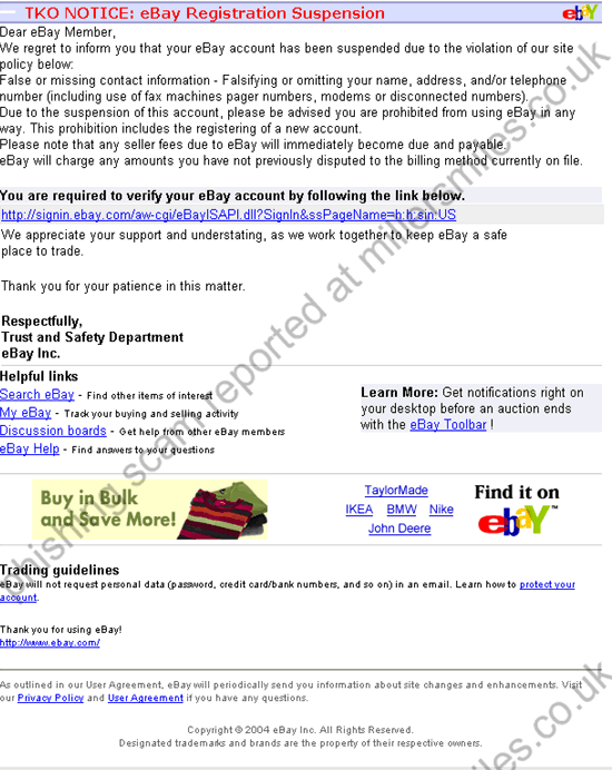 We regret to inform you that your eBay account has been suspended due to the violation of our site policy below:"