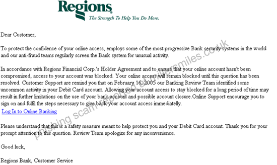" Dear Customer, To protect the confidence of your online access, employs some of the most progressive Bank security systems in the world and our anti-fraud teams regularly screen the Bank system for unusual activity. "