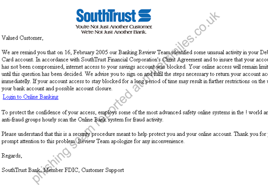 We are remind you that on 16, February 2005 our Banking Review Team identified some unusual activity in your Debit Card account.