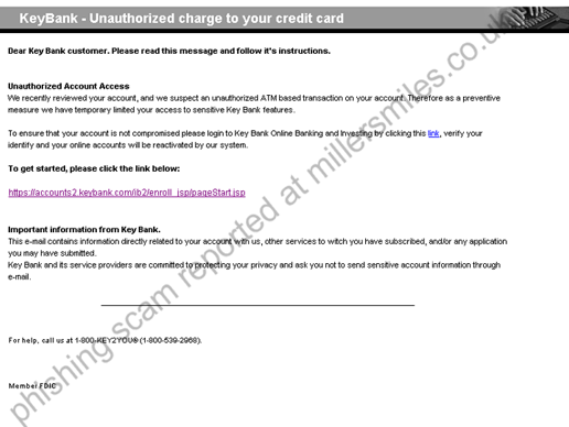 " Dear Key Bank customer . Please read this message and follow it's instructions."