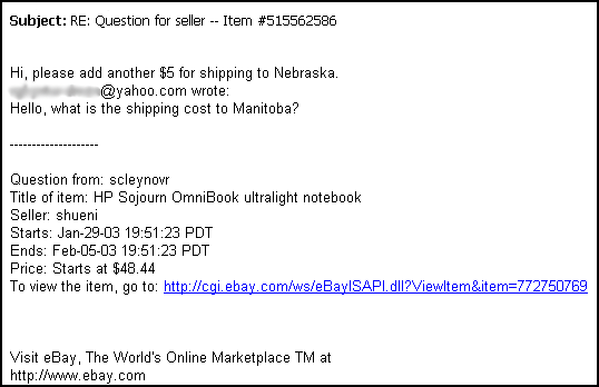 a bogus eBay page which is further scripted to download a Trojan prgram to your