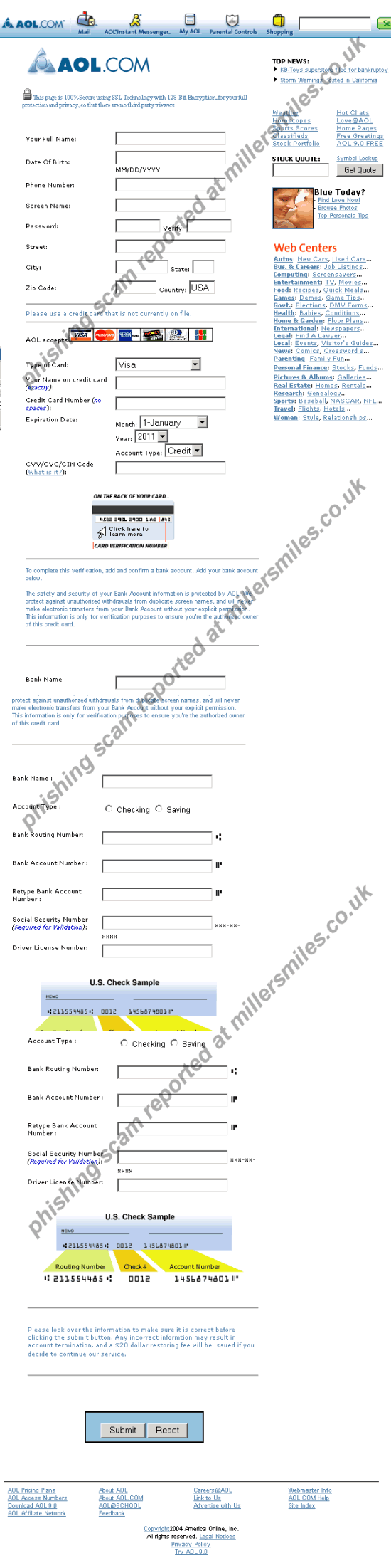 "Dear ... AOL is performing a routine update on all user accounts. We need you to please verify your registration status via the SSL encrypted link provided along with this email..."