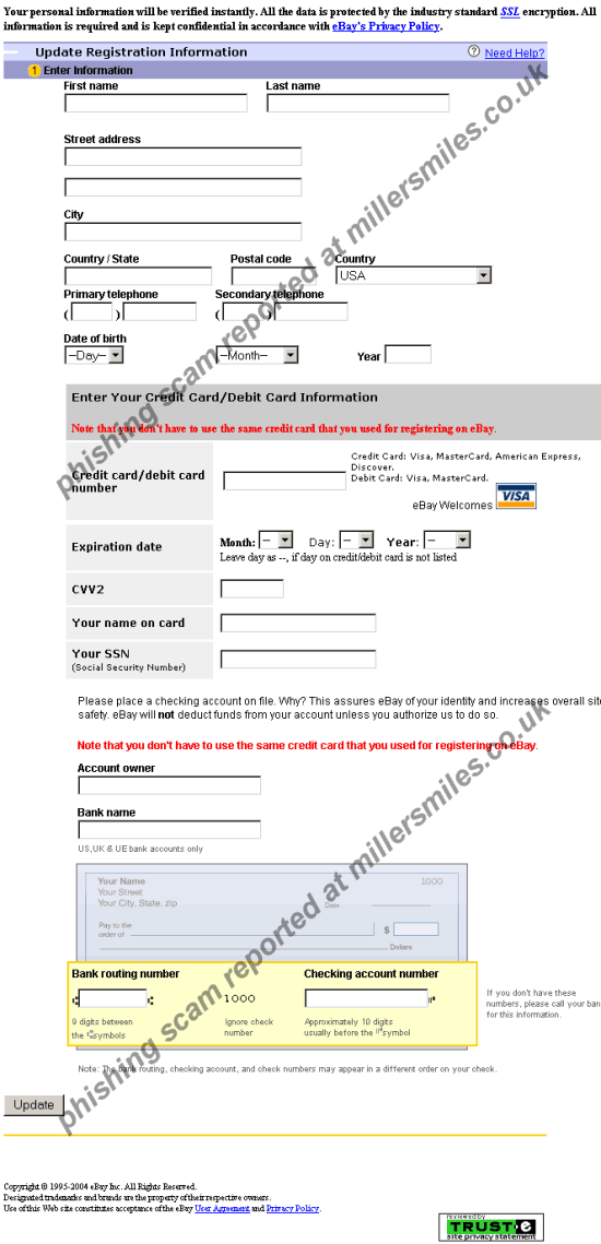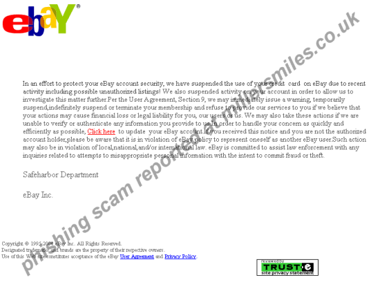 "In an effort to protect your eBay account security, we have suspended the use of your credit card on eBay due to recent activity including possible unauthorized listings! ..."