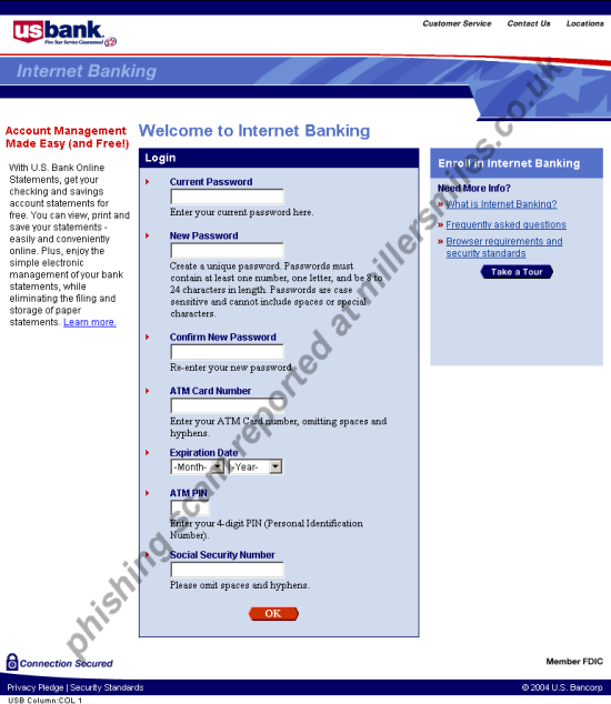 "Dear US Bank Customer, During our regular update and verification of the Internet Banking Accounts, we could not verify your current information. Either your information has been changed or incomplete, as a result your access to use our services has been limited. "...