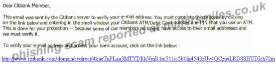 " Dear Citibank member, This email was sent by the Citibank server to verify your email address."...