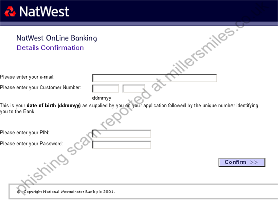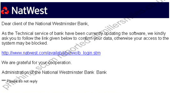 "Dear client of the National Westminster Bank, As the technical service of the bank have been currently updating the software."...