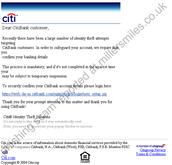 " Dear CitiBank customer,