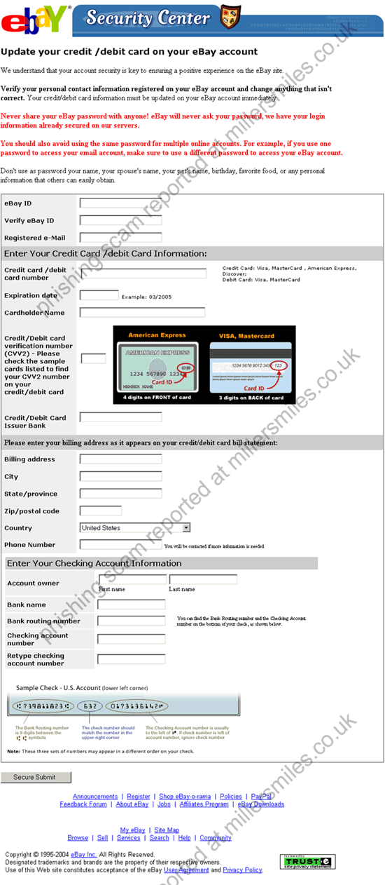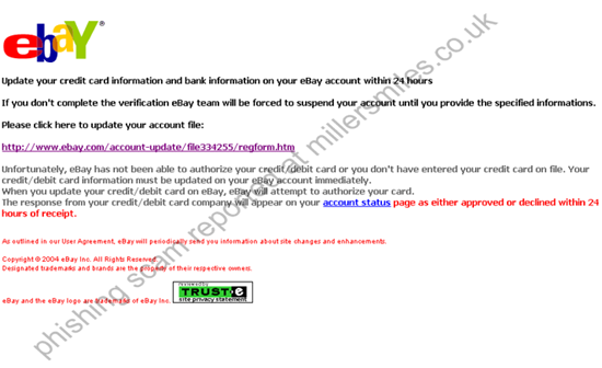 " Update your credit card information and bank information on your eBay account within 24 hours."...