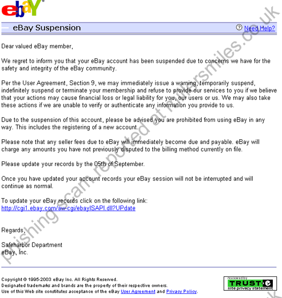 We regret to inform you that your eBay account has been suspended due to concerns we have for the safety and integrity of the eBay community."...