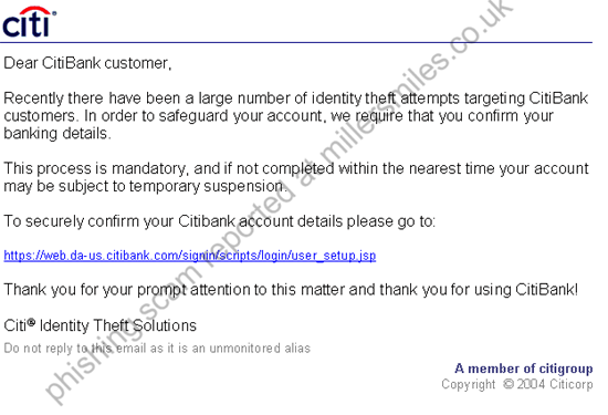 " Dear Citibank customer, Recently there have been a large number of identity theft attempts targeting CitiBank customers."