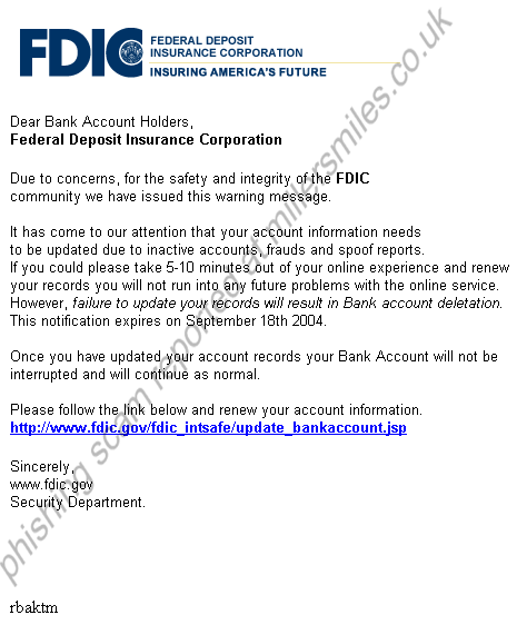 " Dear Bank Account Holders , Federal Deposit Insurance Corporation Due to concerns, for the safety and integrity of the FDIC