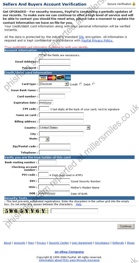 " Get UPGRADED - For security reasons, PayPal is conducting a periodic updates of our records. "...