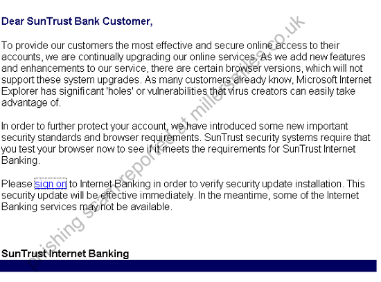 "Dear SunTrust Bank Customer, To provide our customers the most effective and secure online access to their accounts, we are continually upgrading our online services. "...