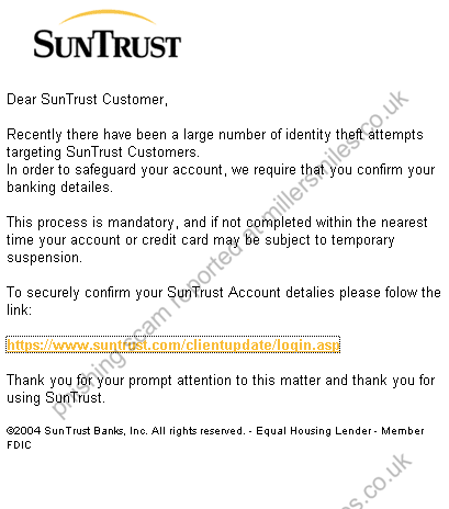 Recently there have been a large number of identity theft attempts targeting SunTrust Customers.