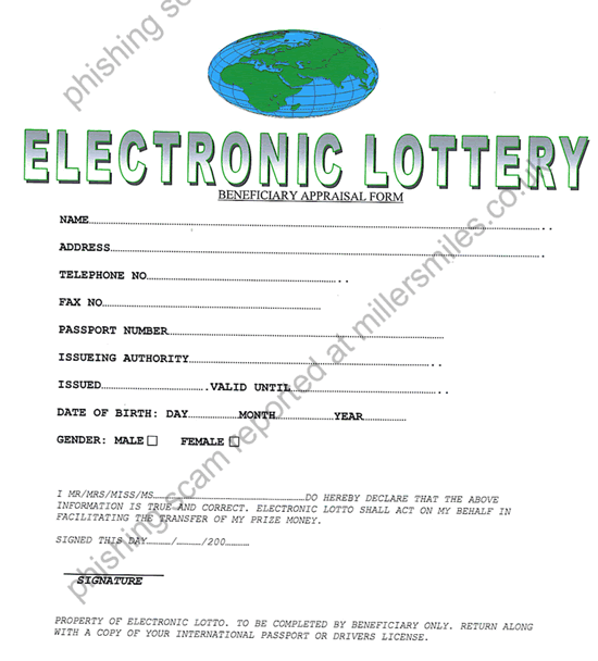 However, our client (ELECTRONIC LOTTERY PROMOTION) has been notified of this development and the status of your claim.Following the above, you are expected to fill the attached form and return back to this office along with a copy of your international passport or driver's license via email attachment for vetting process which is a standard practise just to ensure that we are dealing with the right individual and account.