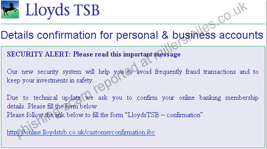 Spoof website not online at time of report, but likely to closely resemble the real Lloyds TSB page at www.lloydstsb.co.uk