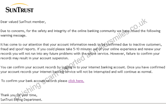" Dear valued SunTrust member,