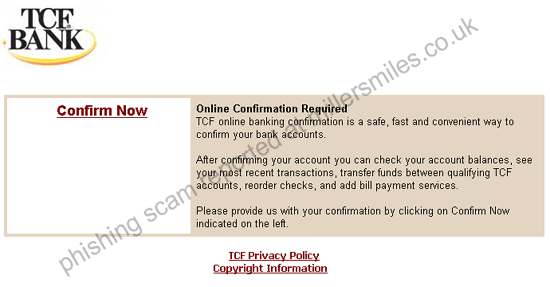 " Online Confirmation Required TCF online banking confirmation is a safe, fast and convenient way to confirm your bank accounts."