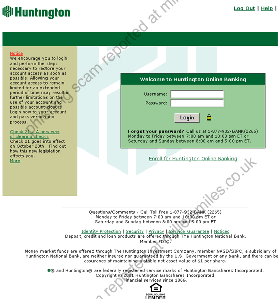 This email is to inform you, that we had to block your Huntington Bank account access because we have been notified that your account may have been compromised by outside parties.