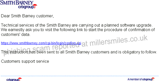 " Dear Smith Barney customer, Technical services of the Smith Barney... "