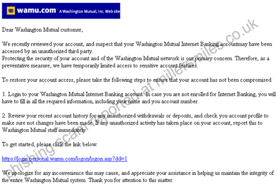 We recently reviewed your account, and suspect that your Washington Mutual Internet Banking accountmay have been
